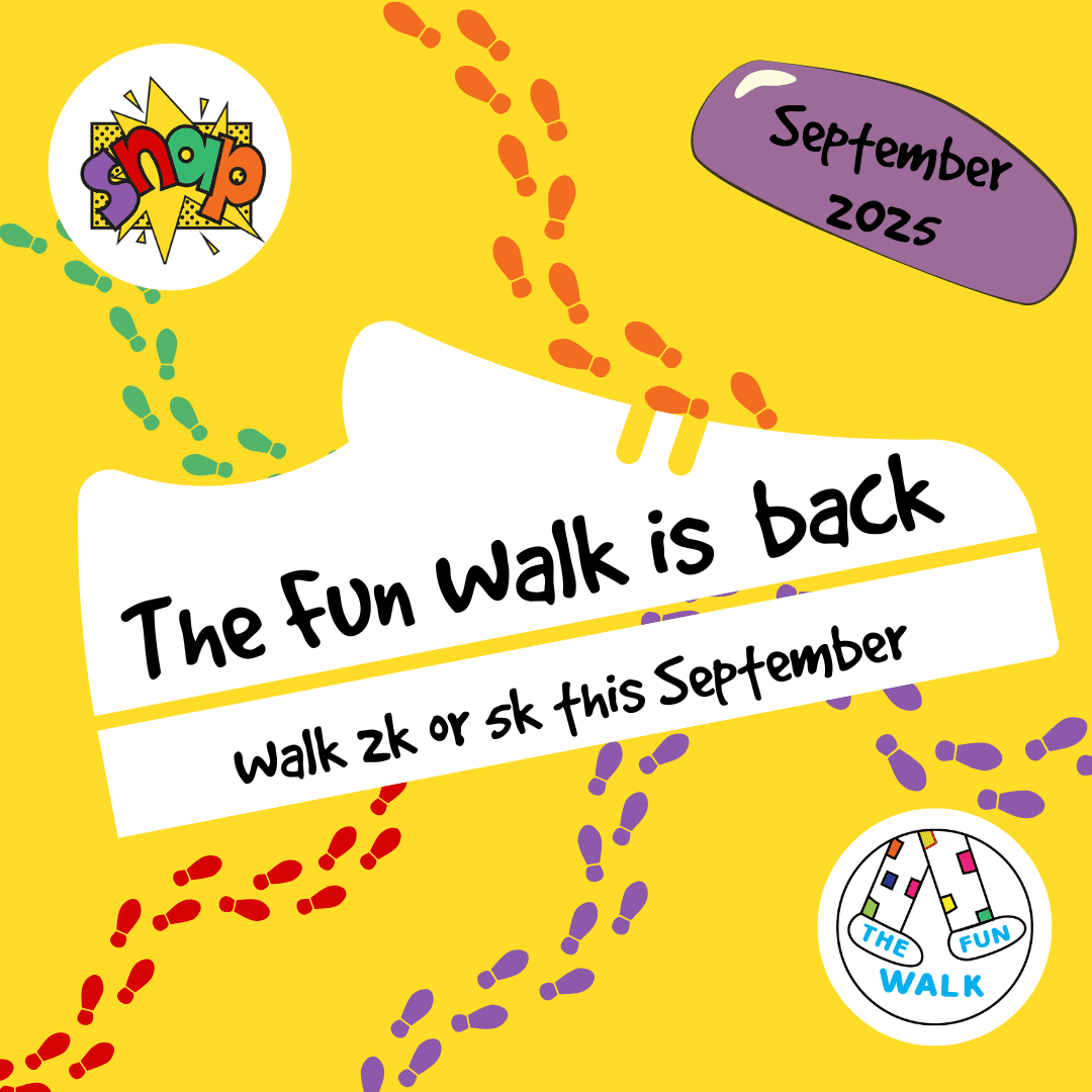 As a bonus, any sponsorship collected, or donations made will be partially matched-funded thanks to the generosity of local businesses and donors associated with The Fun Walk Trust. This means every step you take to help raise funds for SNAP will go the extra mile!